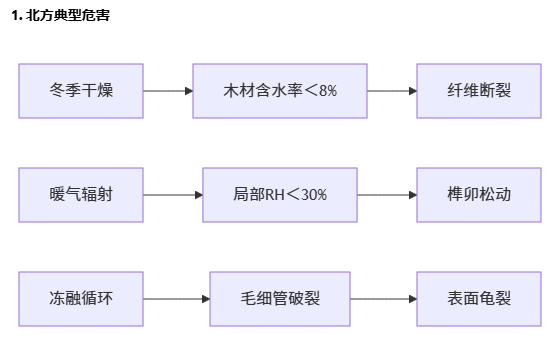 | 指标 | 北方(哈尔滨为例) | 南方(广州为例) | 木雕风险系数 |